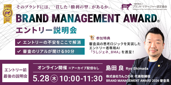 BRAND MANAGEMENT AWARD2026の審査員によるエントリー説明会の最終回のご案内をいたします。