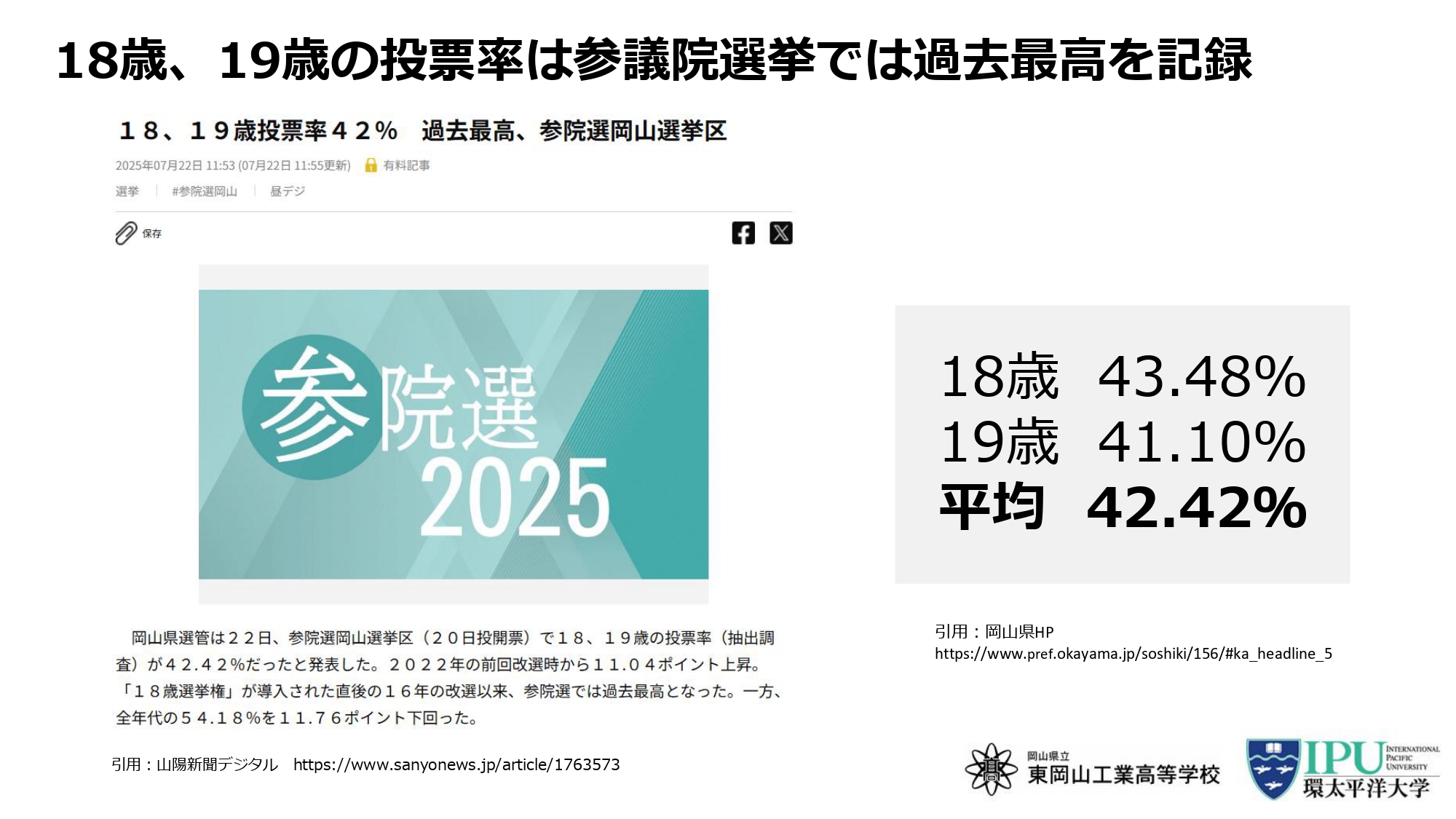 岡山県 岡山市から始める岡山県投票率日本一プロジェクト 高校生と大学生が投票で描く岡山の未来「投票デビューおかやま2025」