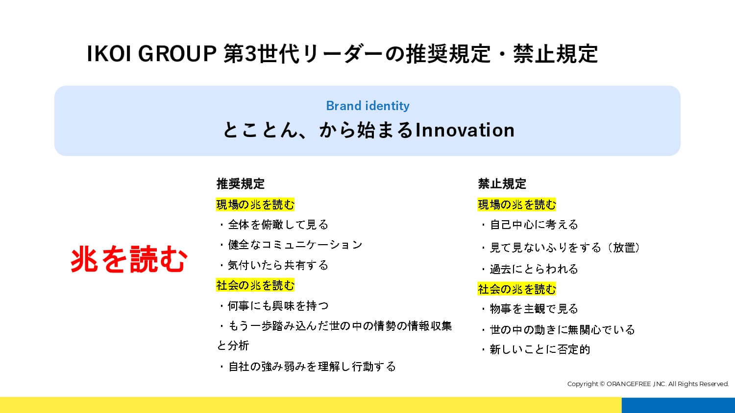 根源価値を掘り当てたブランド・アイデンティティ。誕生の瞬間から、躍進が始まった。ブランディング開始時、5億円だった売上は11年後に105億円に。成長段階で起こる内部課題に対策を打ち、世代を超えて志を一つに乗り越えていくIKOI GROUP。介護業界にあって離職率が低く、新卒採用・リファラル採用も好調。インターナルブランディングは企業の成長のエンジンであり、心を震わせる人間ドラマである。